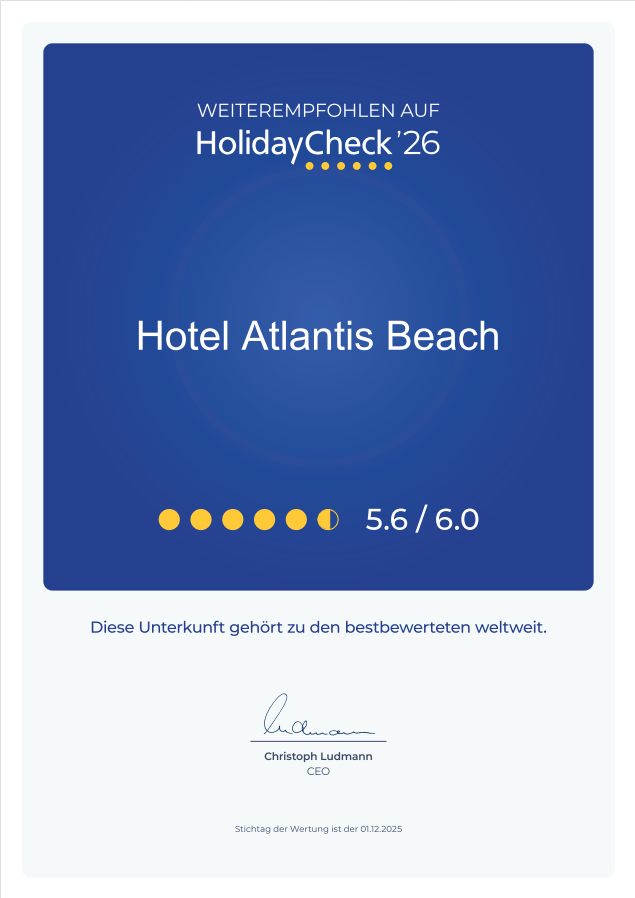 We’ve been recommended, again this year as one of the best accommodations worldwide on Holiday Check 2026